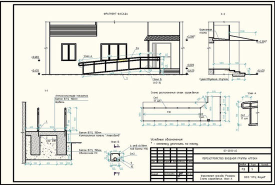 Процесс проектирования входной группы заканчивается получением разрешения на изготовление и установку рекламной конструкции. На данном этапе технический проект направляется в государственные органы, чтобы получить разрешение на изготовление и установку рекламной конструкции по заявленным характеристикам и на указанном в техническом проекте месте.