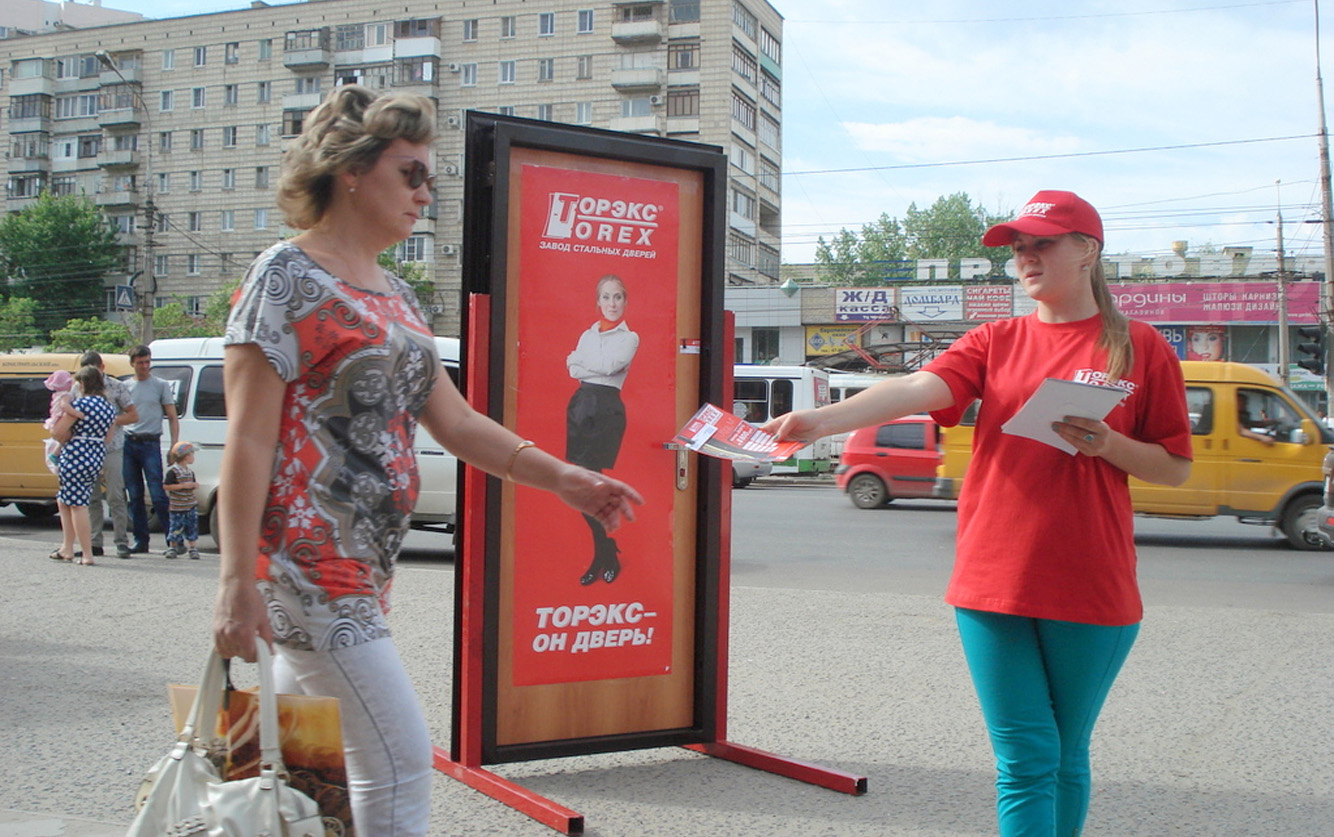 Раздача листовок, буклетов, флаеров, афиш и другой печатной продукции должно осуществляться по определенным правилам, нарушение которых может привести к безрезультатной трате денежных средств. И главным правилом является заметность раздатчика рекламы и цепляющий дизайн листовки. Раздатчик рекламных проспектов должен находиться на пересечении пешеходных и транспортных потоков, и в дневное время суток, и в вечернее, когда народ возвращается с работы, как в хорошую погоду, так в плохую. Следовательно, пройти мимо вашего раздатчика и не заметить рекламу должно быть сложно.