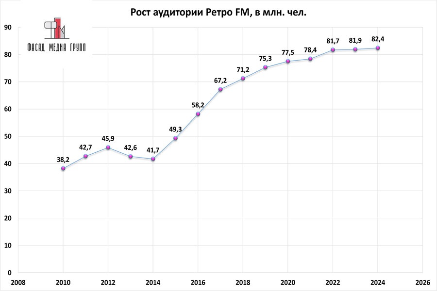 Широкий музыкальный формат, яркий имидж, оригинальные программы и акции сделали «Ретро FM» одним из лидеров российского радиовещания, объединяющим сразу несколько поколений слушателей.