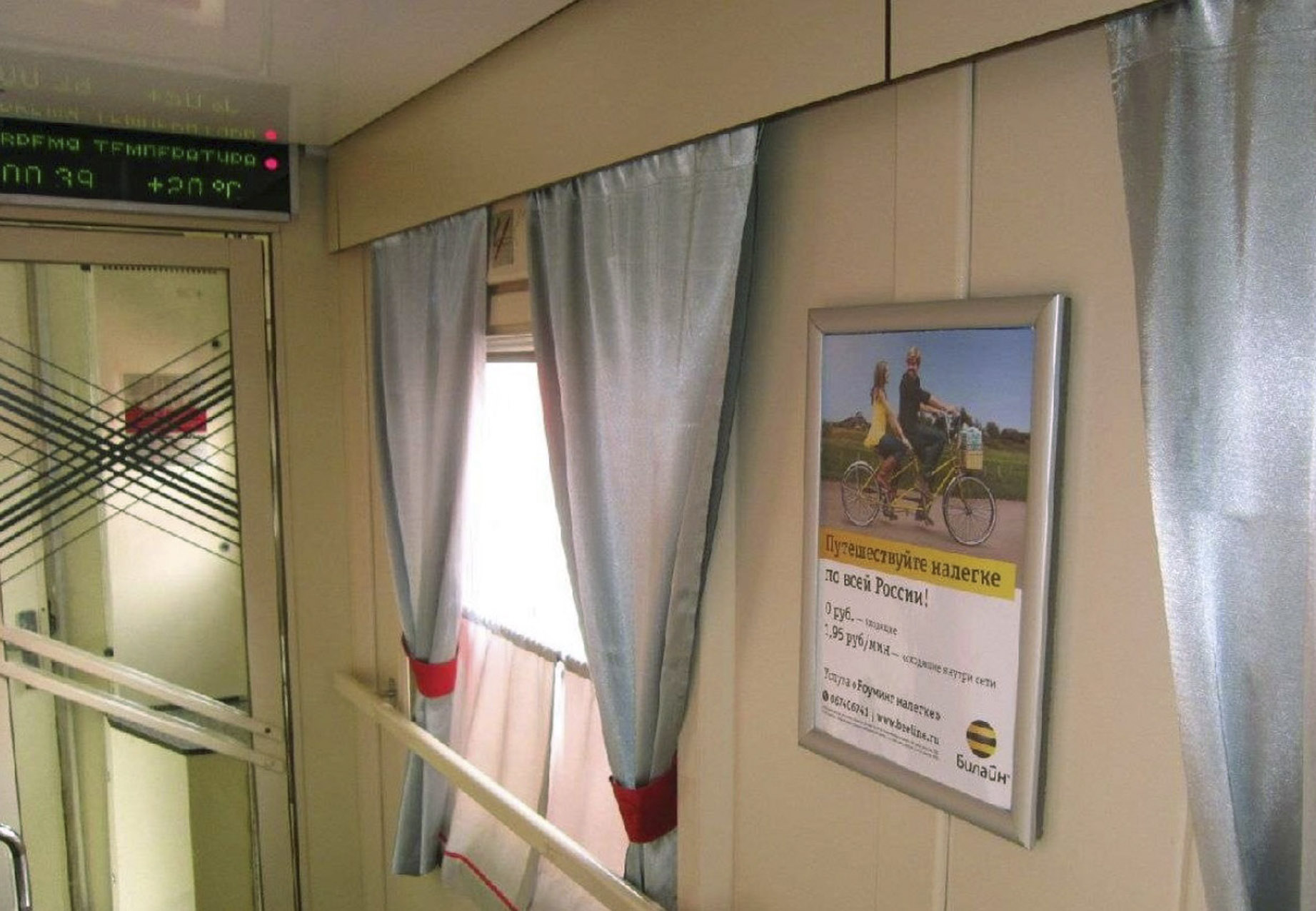 Примеры рекламы в поездах в Биробиджане представлены на фото: