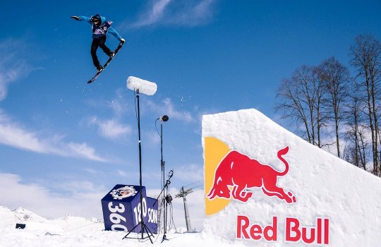 Пример рекламы на трамплинах на горнолыжных курортах: