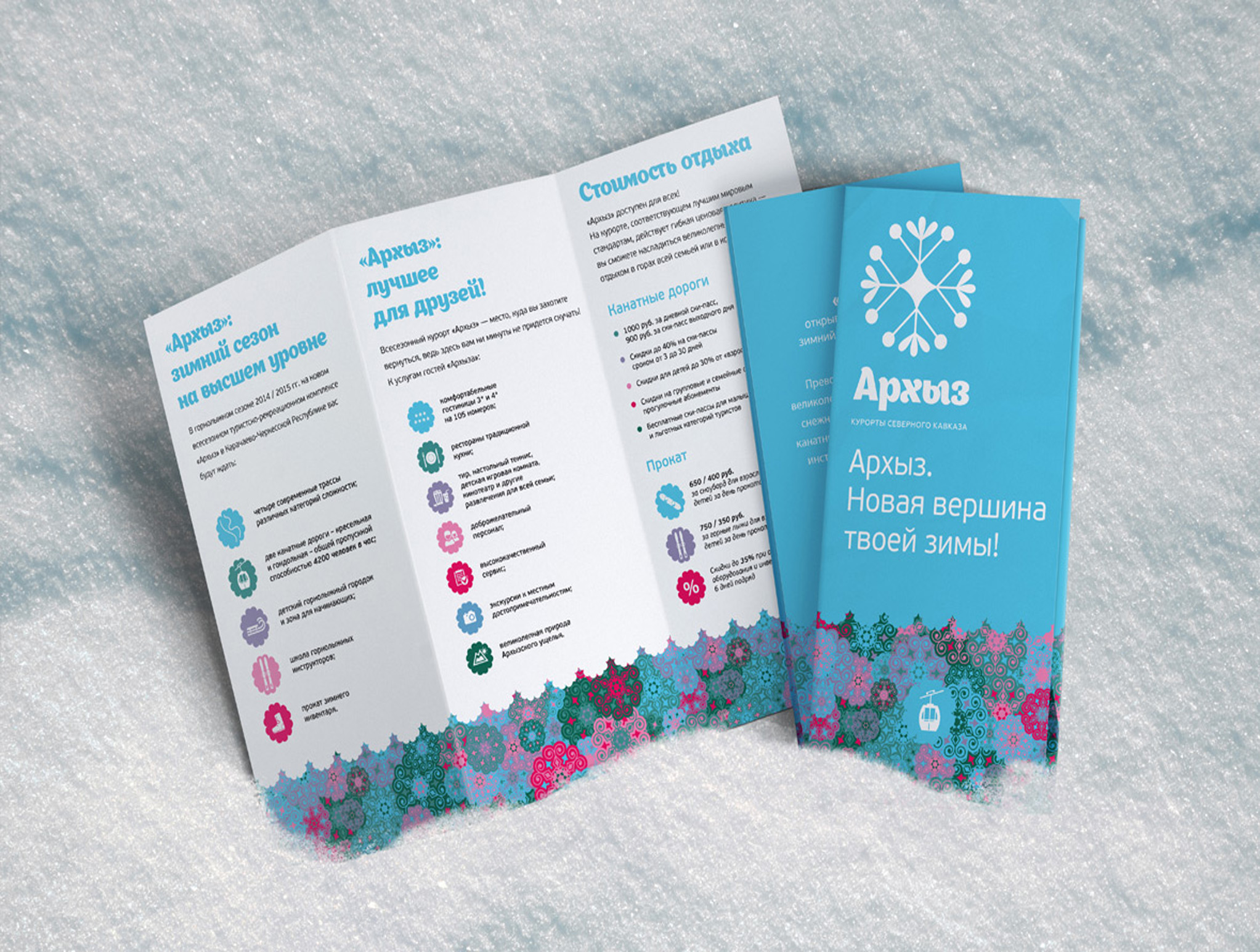 Пример печатных рекламных материалов на горнолыжном курорте: